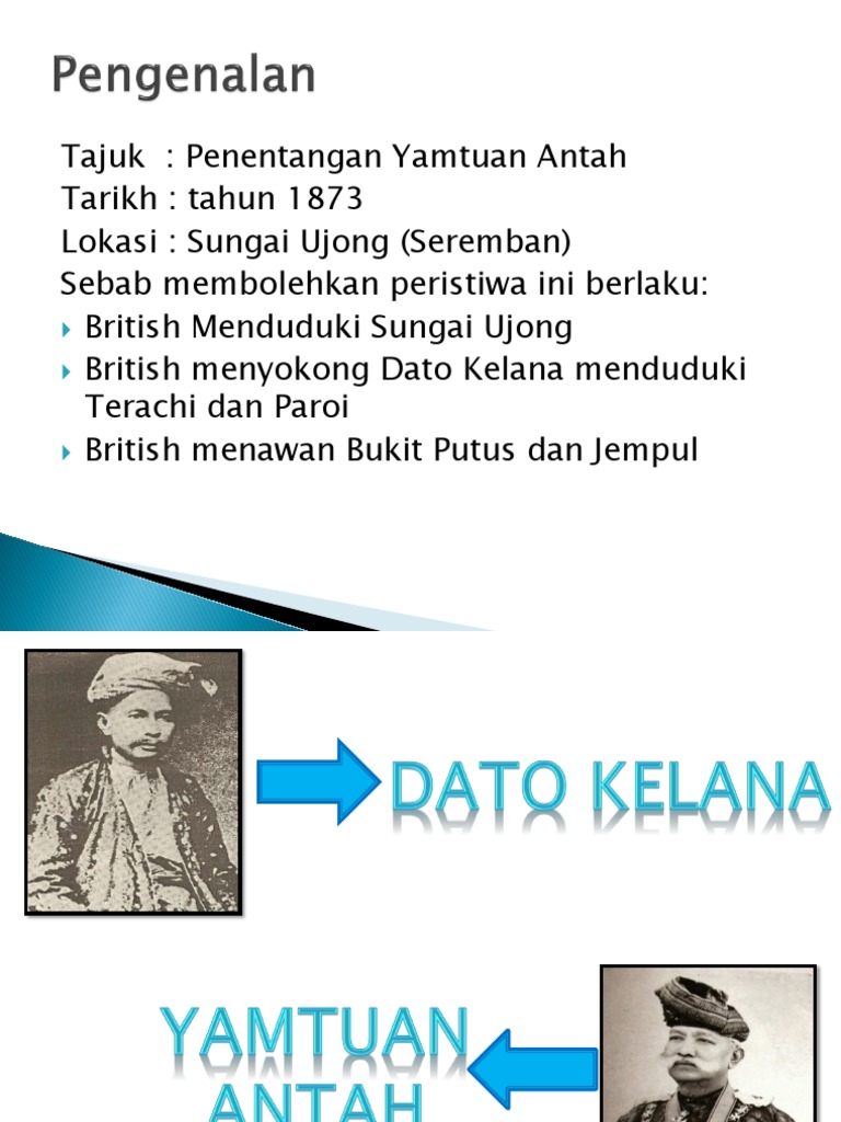 Tidak bersetuju dengan perjanjian antara British dengan Dato Kelena Sungai Ujong. Up to 3 cash back of 6 YAM TUAN ANTAH Kumpulan 6 5W 1Chong Yi Cheng 2Pang Yu Ning 3Tang Jia Hooi 4Aung Yi Hao fLatar belakang - nama sebenarnya Tunku Laksamana.